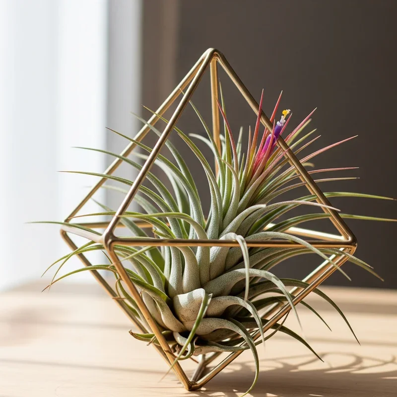 Modern design lovers, this one's for you! Geometric wire frames turn air plants into contemporary art pieces that would make any interior designer swoon. These angular holders, often shaped like diamonds, pyramids, or complex polyhedrons, create striking shadows and add architectural interest to any space. You can find them in copper, brass, black metal, or even rose gold finishes to match your aesthetic. The open design ensures maximum air circulation, which air plants absolutely love. Place them on shelves, coffee tables, or hang them from the ceiling for a three-dimensional display. Mix different sized frames and plant varieties for visual interest. The contrast between the rigid geometric lines and the organic, flowing forms of air plants creates a perfect balance. Your minimalist space just got a dose of living sculpture that's both trendy and timeless!