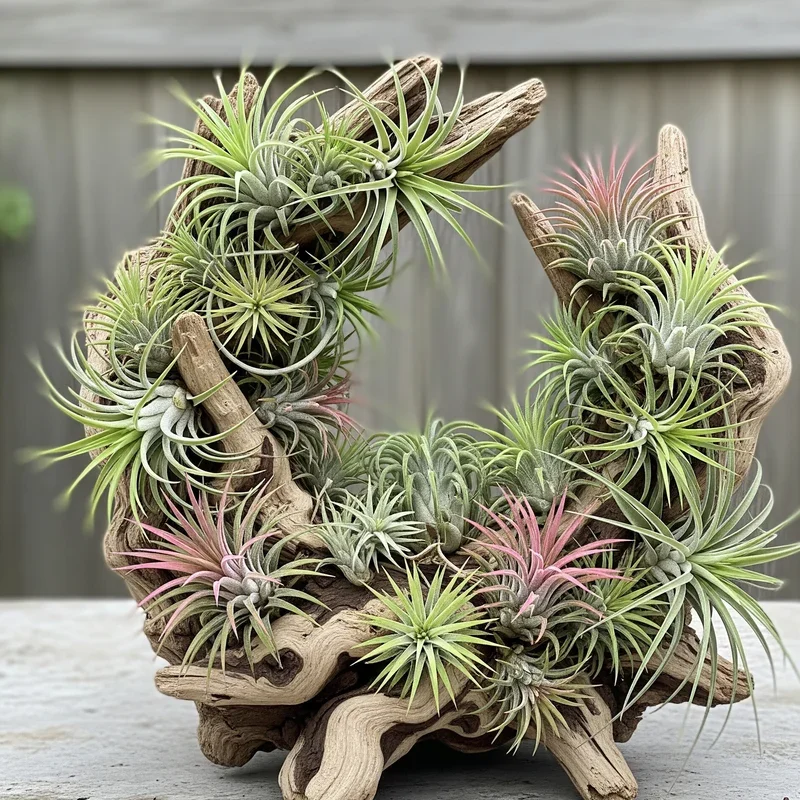 Nature meets art when you pair air plants with weathered driftwood pieces! Each piece of driftwood is unique, offering natural nooks and crannies perfect for nestling air plants. Scout beaches, rivers, or craft stores for interesting shapes that speak to you. The organic curves and textures of driftwood complement the wild, spiky nature of air plants beautifully. Simply tuck smaller varieties into natural holes or use a dab of plant-safe glue to secure them to the surface. Create a centerpiece for your dining table or a striking mantel display that brings the outdoors in. The neutral tones of driftwood work with any décor style, from minimalist to bohemian. As your air plants grow and bloom, they'll create an ever-evolving sculpture that looks different from every angle. It's like having a piece of the forest right in your living room!