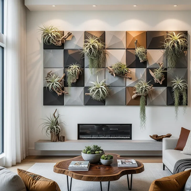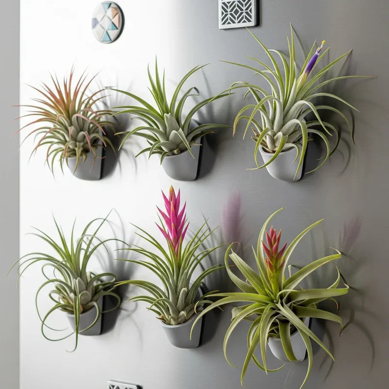 Why hang a painting when you can create living, breathing wall art? Transform blank walls into vertical gardens using mounted frames, shadow boxes, or specially designed air plant frames. Create patterns with different air plant varieties, playing with texture, color, and size to compose your masterpiece. Use chicken wire or decorative mesh backing to secure plants at various angles, creating depth and dimension. These installations work brilliantly in small spaces where floor real estate is precious. Change your display seasonally or whenever you want a fresh look; air plants are easily repositioned! Consider backlighting your installation for dramatic evening effects. Your wall becomes a conversation piece that literally grows more interesting over time. Unlike traditional art, this piece changes daily, responding to light and seasons, making your home feel alive and dynamic.