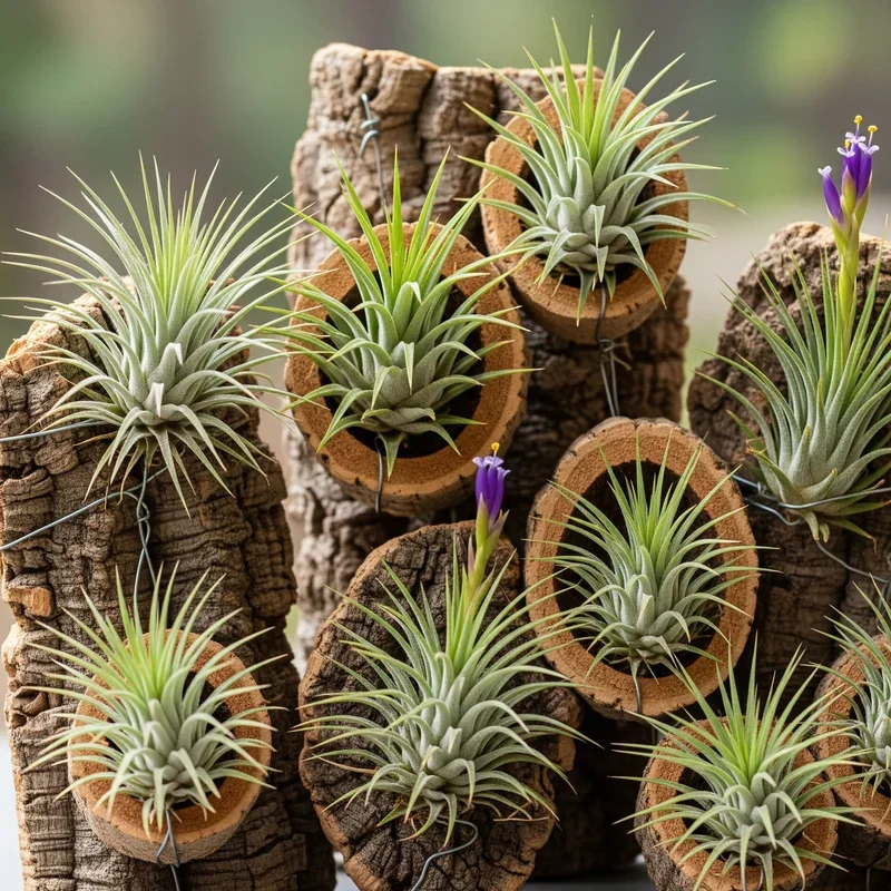 Cork bark offers a sustainable, natural mounting option that air plants absolutely adore! The textured surface provides plenty of grip for plant roots, while the material itself retains just enough moisture to keep plants happy. You can find cork bark in flat pieces for wall mounting or curved sections that stand freely on shelves. Simply nestle air plants into natural crevices or secure them with floral wire until they attach naturally. The neutral brown tones complement any décor while adding organic texture to modern spaces. Cork is naturally antimicrobial and won't rot, making it perfect for humid environments. Create a forest-like display by combining multiple pieces at different angles. This setup mimics air plants' natural habitat, where they grow on tree bark in tropical forests. Your indoor space suddenly feels like a rainforest canopy!