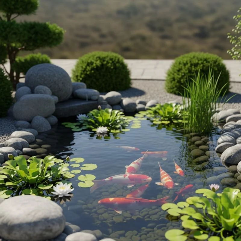 2. Japanese Koi Pond: Zen Garden Centerpiece
