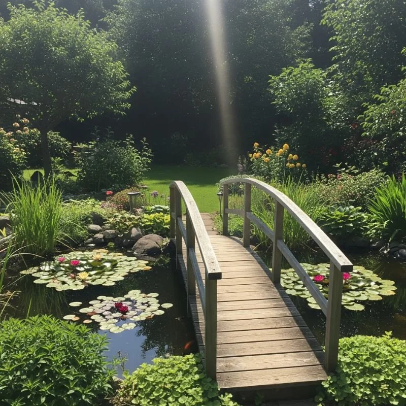 11. Pond with Bridge Feature: Crossing Over Tranquility