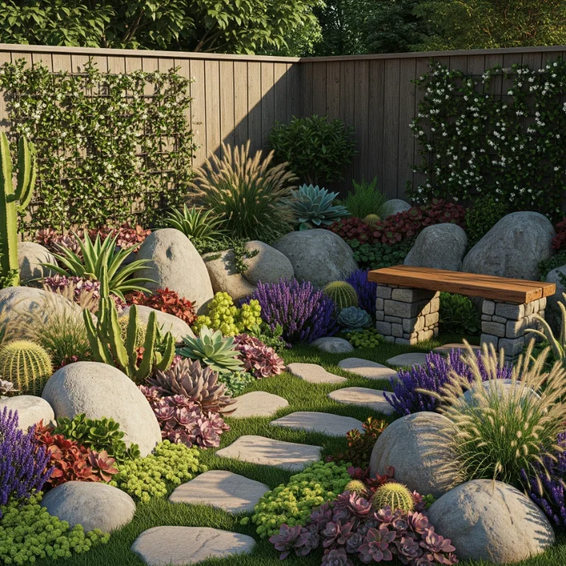 3. Rock Garden Retreat with Drought-Tolerant Plants