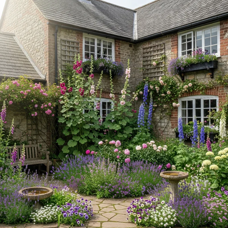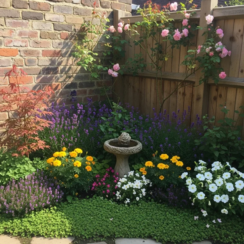 Transform your corner into a romantic cottage garden by mixing perennials like hollyhocks, delphiniums, and foxgloves with climbing roses cascading over a simple arbor. This timeless design works magic in corners because it creates height and depth naturally, drawing the eye upward while softening harsh angles with billowing blooms. Layer plants by height, placing taller specimens against the fence or wall, medium-sized plants in the middle, and ground covers spilling onto pathways. Add a weathered bench or vintage garden ornament as a focal point. The beauty of cottage gardens lies in their seemingly effortless chaos, where plants self-seed and intermingle freely. Choose a color palette of soft pastels or go bold with jewel tones, but keep it cohesive by repeating colors throughout the space.