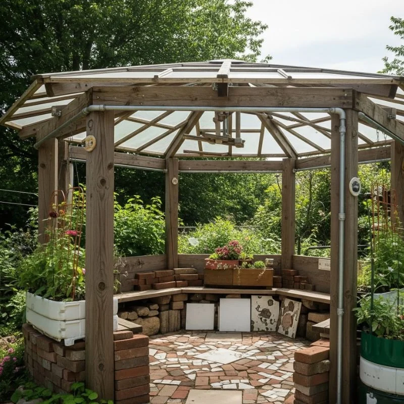 Construct a charming gazebo using salvaged materials like old doors, windows, and reclaimed lumber for an eclectic shade structure. This creative approach reduces waste while adding character to your garden. Old doors become walls, vintage windows create interesting light patterns, and weathered wood adds instant patina. Plan your design around available materials for a truly unique structure. It's like building a shade sculpture from history! The enclosed design provides maximum sun protection while creating an intimate outdoor room. Paint everything in coordinating colors for cohesion or embrace the mismatched aesthetic. This project requires more advanced DIY skills but results in a one-of-a-kind focal point. The covered space becomes perfect for outdoor dining or relaxation regardless of weather.