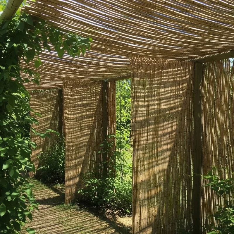 Transform ordinary chain-link or wooden fences into shade-providing barriers by attaching reed or willow fencing material. This natural screening blocks harsh sunlight while adding textural interest to boring boundaries. Roll out reed fencing and secure with zip ties or wire for instant transformation. The material filters light beautifully while maintaining airflow. It's like giving your fence a natural makeover! This affordable solution works especially well for creating shaded borders along sunny property lines. The neutral color blends with any garden style. Replace sections as needed without major investment. Combine with climbing plants for enhanced coverage and visual appeal. This technique also increases privacy while solving shade issues, making it perfect for urban gardens where both concerns exist.