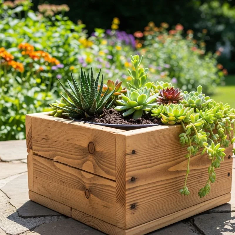 Use Reclaimed Wood: Old fence boards or pallet wood can create beautiful rustic planters with character.
