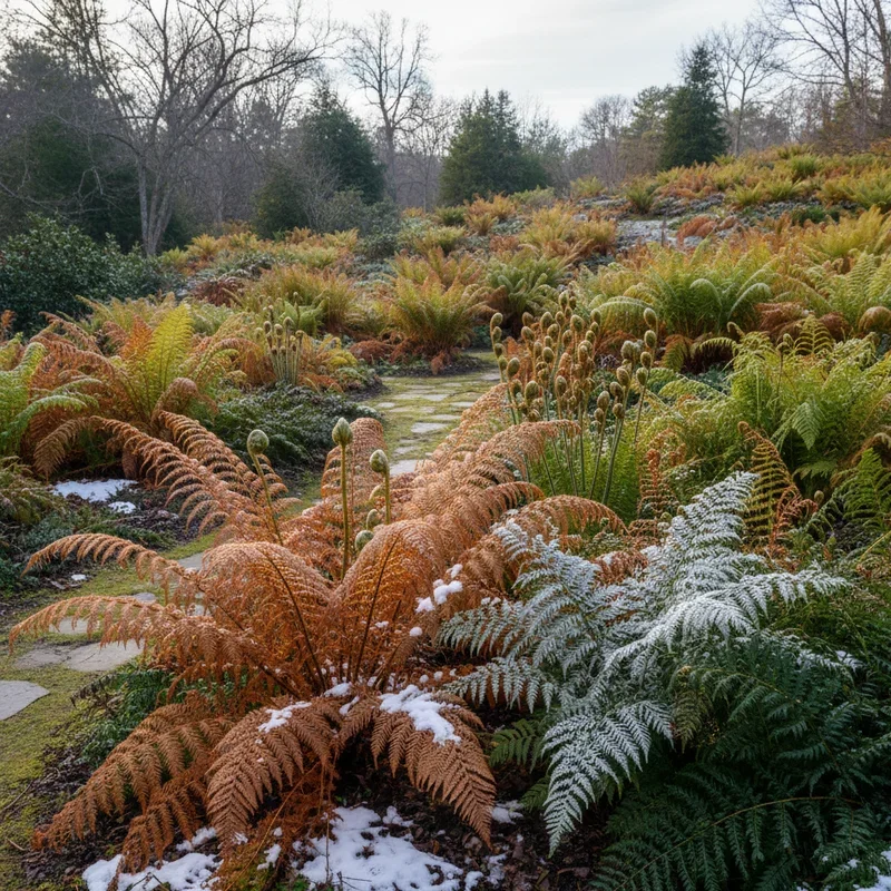 Design gardens that showcase ferns' year-round beauty by combining evergreen and deciduous species with complementary seasonal plants for continuous interest. Include evergreen ferns like Christmas and holly ferns that provide green structure when deciduous varieties disappear. Plant spring ephemerals like snowdrops and crocuses that bloom before deciduous fern fronds unfurl. Add autumn ferns whose new growth emerges copper-colored, providing fall-like tones in spring gardens. Position ferns where winter frost transforms fronds into crystalline sculptures that catch low winter light. Include berry-producing shrubs and seed heads that combine with persistent fern fronds for winter arrangements. Document seasonal changes to refine plant combinations that ensure no empty periods in your display. Your four-season garden celebrates ferns' often-overlooked seasonal variations while providing year-round sanctuary for both wildlife and weary gardeners seeking green solace.