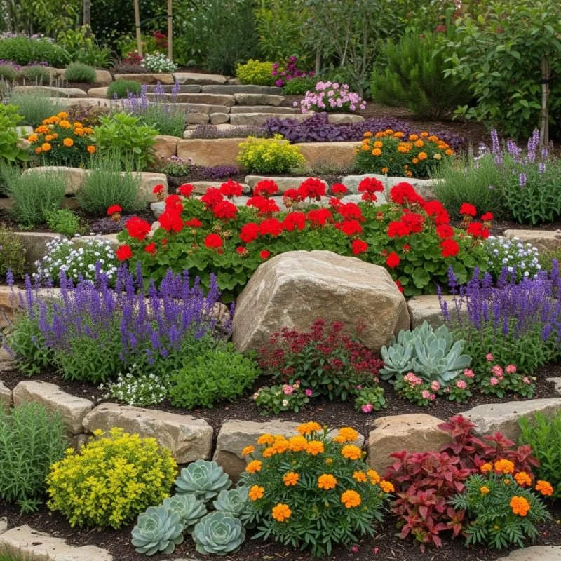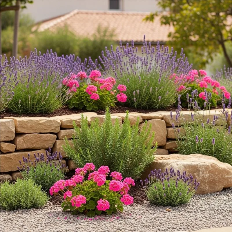 Mediterranean herbs, sedums, ornamental grasses, and native wildflowers thrive in rocky soils.
