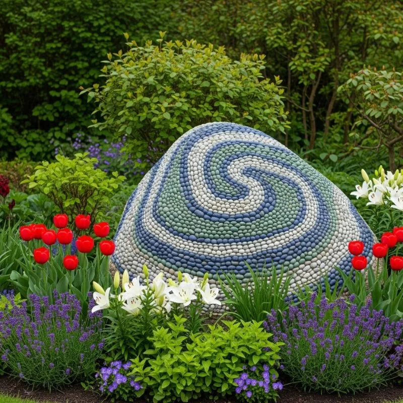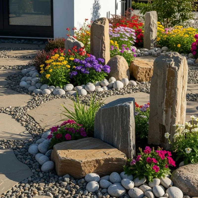 Create sophisticated modern landscapes by combining different stone types, sizes, and textures in carefully composed arrangements that showcase both geological diversity and plant beauty. This advanced design approach requires careful planning but produces stunning results that look professionally designed and maintained. Combine smooth river rocks with rough fieldstone, polished granite with weathered limestone, or angular slate with rounded beach pebbles to create complex textural compositions. Plant selection becomes crucial in mixed stone gardens, as you need species that complement the sophisticated hardscape without overwhelming the stone composition. Choose plants with strong architectural forms, interesting foliage textures, or seasonal characteristics that enhance rather than compete with the stone display. This style works particularly well in contemporary settings where artistic expression and design sophistication take precedence over traditional gardening approaches.