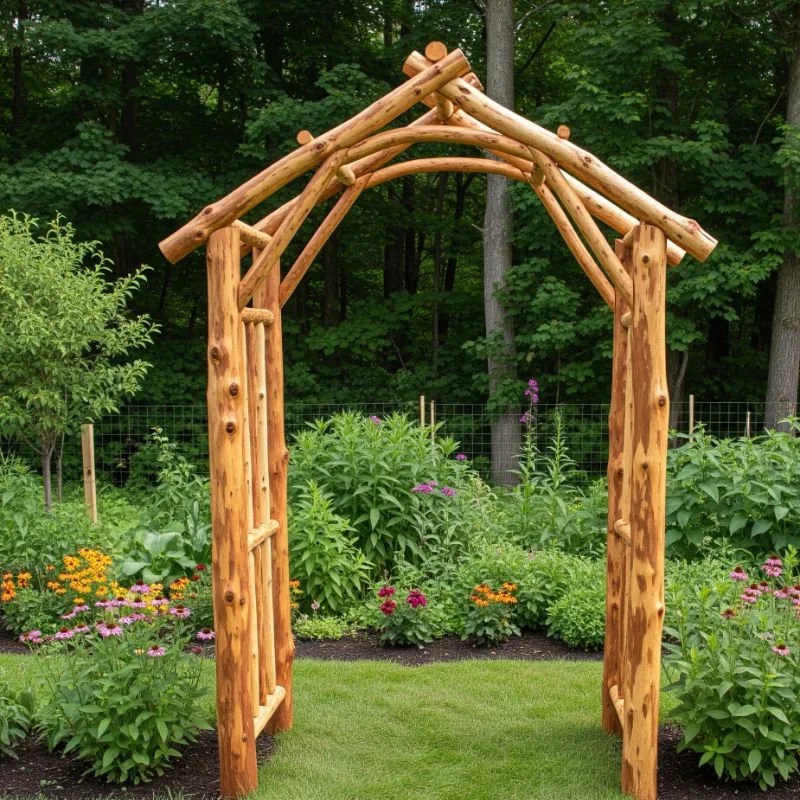 Bring a touch of the wilderness to your backyard with cedar log arches. These substantial structures make bold statements while naturally resisting rot and insects. The rich color and distinctive grain of cedar logs add warmth and texture that manufactured materials can't match. You can leave the bark on for extra rustic appeal or strip it for a cleaner look. These arches work beautifully as entrances to vegetable gardens or along woodland paths. Their sturdy construction easily supports heavy climbers like grape vines or wisteria. What makes cedar special? Its natural oils give off a pleasant aroma, especially after rain, adding another sensory dimension to your garden experience.