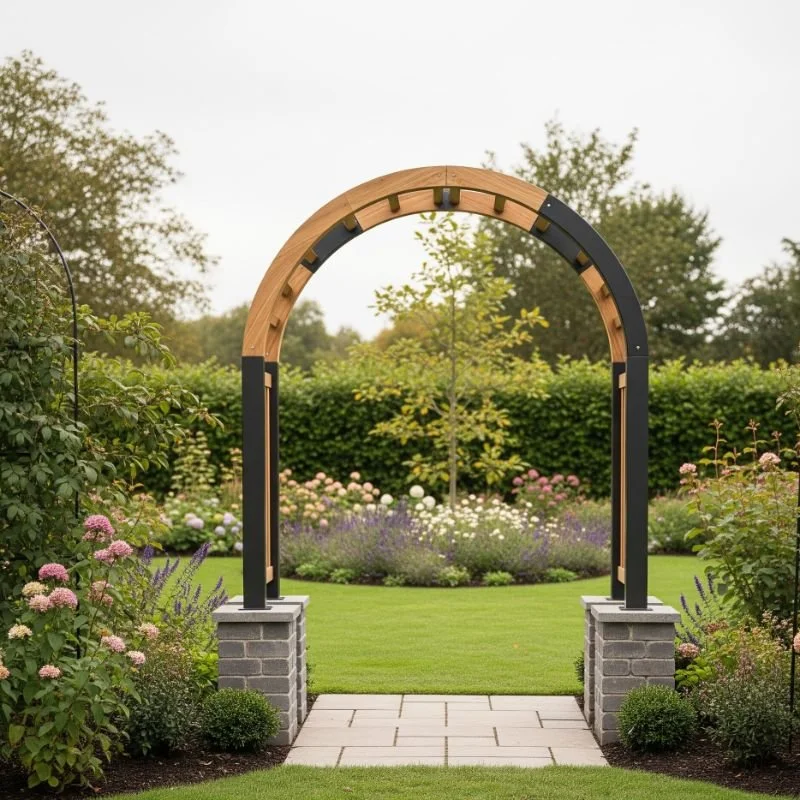 Clean lines and simple geometry make steel arches perfect for contemporary landscapes. These sleek structures prove that garden arches don't need ornate details to make a statement. Their minimal design lets climbing plants take center stage while adding architectural interest to your outdoor space. Powder-coated finishes in black, white, or even bold colors can complement your home's modern aesthetic. What's great about steel? It's incredibly strong yet visually light, creating an airy feel that won't overwhelm smaller gardens. Pair these arches with architectural plants like climbing hydrangeas or star jasmine for a sophisticated look. The contrast between industrial materials and soft foliage creates a stunning visual tension that defines modern garden design.