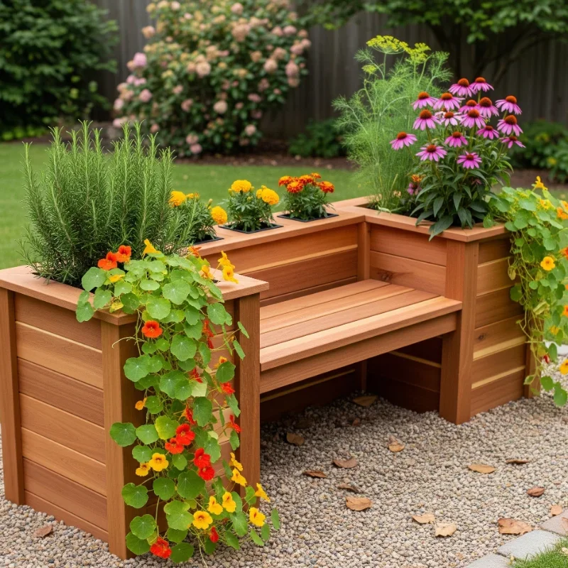 Maximize functionality with brilliant designs that combine seating and planting in one gorgeous unit! These dual-purpose pieces create intimate garden moments while solving storage and space challenges. Picture a wooden bench with built-in planters at each end, filled with fragrant herbs or colorful annuals at perfect sniffing height. Modern versions feature sleek lines with integrated lighting, hidden storage compartments, and weather-resistant materials. The planter sections can flank seating or wrap around backs for living privacy screens. Use tall plants for shade and screening or low varieties that won't obstruct conversation. These combinations work beautifully in small spaces where every element must earn its keep. Position them to create cozy nooks, define outdoor rooms, or provide rest stops along garden paths. Your guests will love relaxing surrounded by nature while you appreciate the efficient use of space.