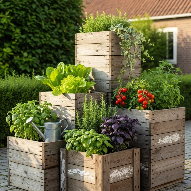 Bring farmhouse charm to any outdoor space with garden boxes crafted from weathered reclaimed wood! Each planter tells a story through its worn patina, nail holes, and character marks from previous lives. Source materials from old barns, pallets, or demolished buildings for authentic rustic appeal. The aged wood naturally resists weather while providing unique textures and colors impossible to replicate. Combine different wood types for eclectic patchwork designs or maintain consistency with single sources. These boxes pair beautifully with cottage gardens, wildflowers, and informal plantings. Line with plastic to extend life while preserving exterior character. Sand rough edges for safety but leave imperfections that add charm. Seal with eco-friendly products to protect wood without losing weathered appearance. Your garden gains instant history and warmth with these sustainable containers that honor the past while growing the future.