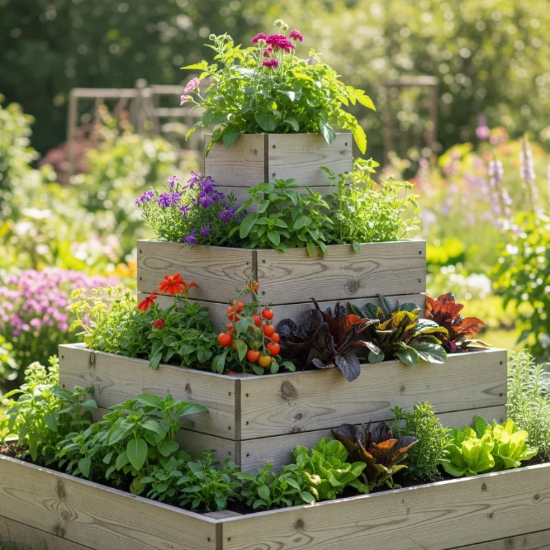Create a stunning focal point with pyramid-style tiered boxes that add dimension and drama to any outdoor space. These multi-level structures maximize planting area while minimizing footprint, making them perfect for corners or central garden features. Each ascending tier provides different growing conditions, with sun-lovers on top and shade-tolerant plants below. Build them from cedar planks, composite materials, or even stacked concrete blocks for budget-friendly options. The graduated design naturally creates excellent drainage while allowing you to showcase plants at various heights. Fill top tiers with cascading flowers that spill downward, middle sections with bushy herbs, and bottom levels with leafy vegetables. This vertical approach makes harvesting easy and creates visual interest from every angle. Your pyramid becomes a living sculpture that changes with seasons, offering year-round beauty and productivity in one spectacular structure.