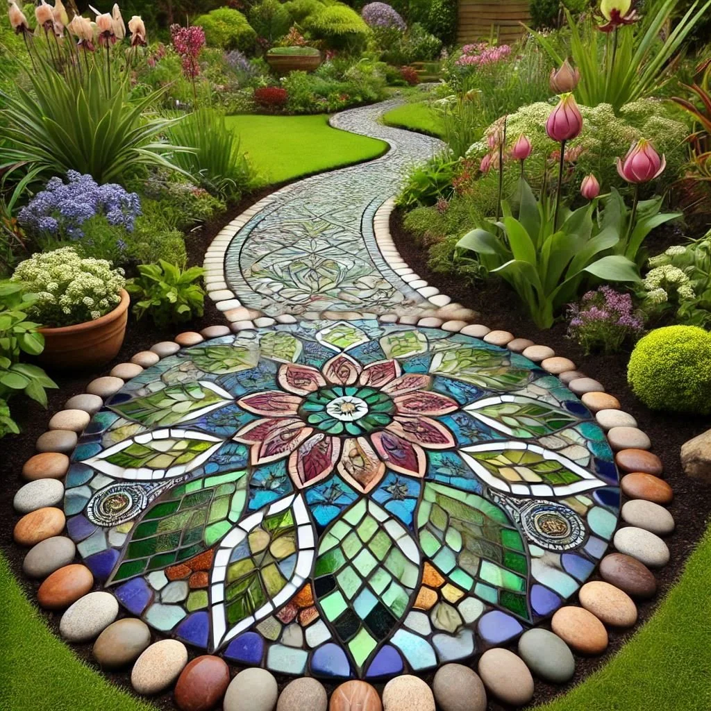 Create a stunning and artistic focal point in your garden with glass mosaic paths. These unique walkways feature colorful glass pieces arranged in intricate patterns or abstract designs, adding a dazzling sparkle and vibrant charm to your outdoor space. The reflective quality of glass catches the light, creating a dynamic and ever-changing display that elevates the beauty of your garden. Glass mosaics come in an array of colors and textures, offering endless customization options to suit your personal style and garden theme. Whether you opt for a bold, geometric pattern or a softer, organic design, these paths showcase your creativity while providing a functional walkway. Durable and visually captivating, glass mosaic paths turn every step into a piece of art, making your garden truly one of a kind.