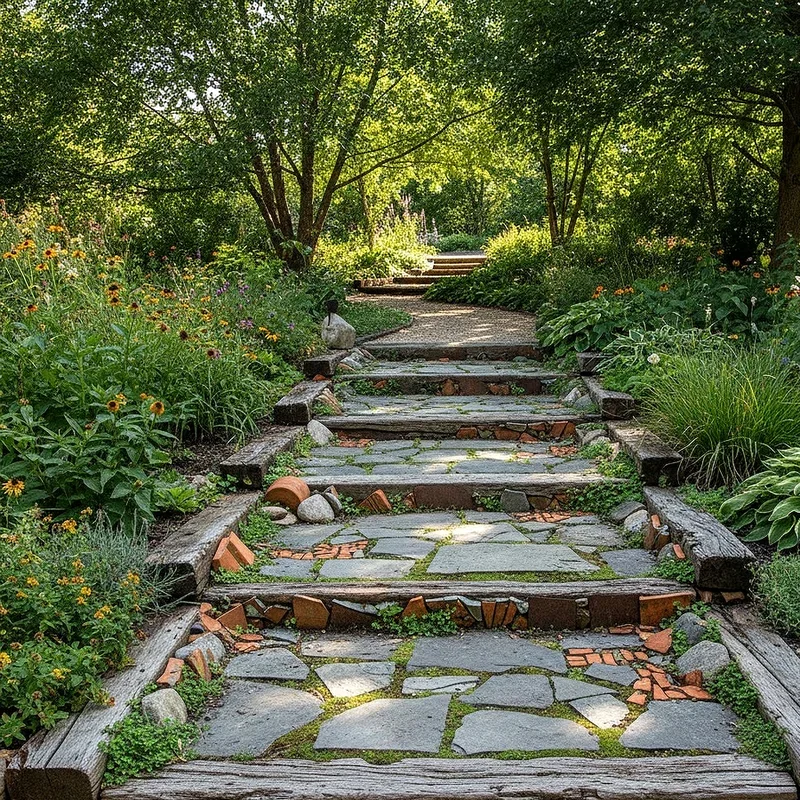 Reclaimed material steps demonstrate your commitment to sustainability while adding unique character to your garden. Salvaged bricks, stones, or timbers bring history and story to your landscape design choices. These materials often feature beautiful weathering and patina that new products cannot replicate authentically. You'll find reclaimed options at architectural salvage yards, demolition sites, and specialty suppliers. Using recycled materials reduces environmental impact while creating one of a kind garden features. Mixed materials from different sources create eclectic, artistic steps that showcase your personal style. The varied sizes and colors tell a visual story while providing functional pathways through your space. This approach allows you to create beautiful steps on a budget while reducing waste destined for landfills.