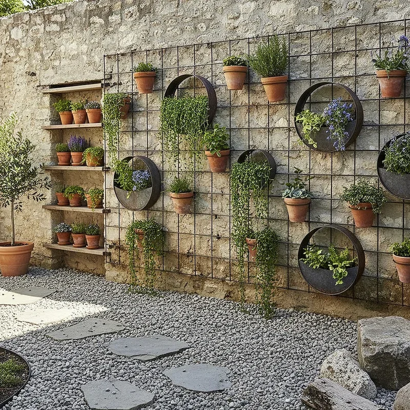 13. Vertical Garden Integration with Wall-Mounted Pots