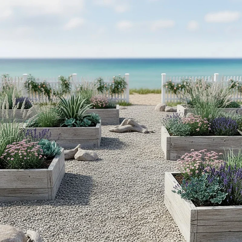 Capture the relaxed vibe of seaside living by incorporating weathered wood planters filled with coastal plants into your gravel garden design. Select containers made from reclaimed driftwood, old boat timber, or purposely distressed wooden boxes that echo beachcombing treasures. Fill them with plants that tolerate salt spray and sandy conditions like ornamental grasses, sea holly, and lavender. Use pale-colored gravel such as crushed shells or white pebbles to enhance the coastal theme while providing excellent drainage for your potted plants. Arrange containers alongside pieces of driftwood, old buoys, or maritime rope to strengthen the nautical narrative. The combination creates a casual, wind-swept aesthetic that makes you feel like you're gardening beside the ocean, even if you're miles from the nearest beach. This design philosophy celebrates the beauty of natural weathering and the passage of time.