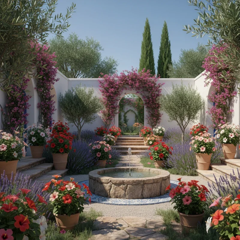 Transport yourself to the sun-drenched coasts of the Mediterranean by combining hibiscus with classic regional plants and design elements. Hardy hibiscus varieties complement the relaxed elegance of Mediterranean gardens perfectly, especially when paired with lavender, rosemary, and olive trees. Create gravel pathways that wind through planted areas, adding terra cotta pots filled with hibiscus for authentic charm. Use warm-toned stone or stucco walls as backdrops that make vibrant hibiscus blooms pop. Incorporate a small water feature like a fountain to provide the soothing sounds of trickling water while increasing humidity for your plants. Group plants in informal clusters rather than rigid rows, mimicking the natural growth patterns found in Mediterranean landscapes. This style celebrates the beauty of slightly wild, sun-loving plants that thrive with minimal fuss.
