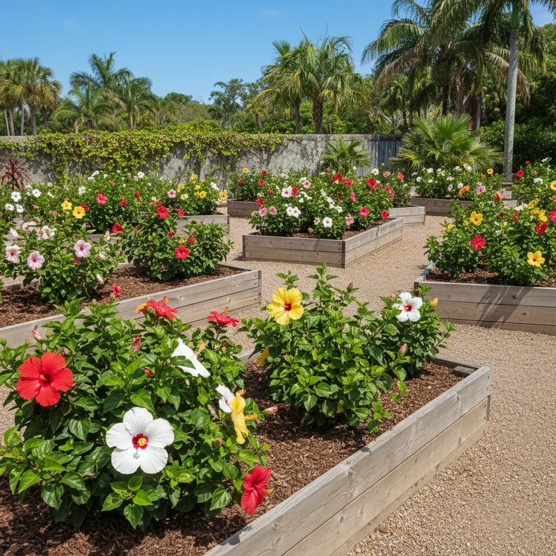 Picture walking along a pathway lined with hibiscus blooms nodding in the breeze like nature's own welcoming committee. A dedicated hibiscus border creates dramatic impact while defining garden spaces and guiding visitors through your landscape. Start by preparing a bed at least 4 feet wide to accommodate mature plant sizes. Arrange plants in a staggered pattern rather than straight rows for a more natural appearance. Mix bloom colors thoughtfully, either creating a harmonious gradient effect or bold contrasting sections. Edge your border with low-growing perennials or decorative mulch to create a polished finish. Regular deadheading keeps the display tidy and encourages more blooms. This focused approach allows you to perfect growing conditions specifically for hibiscus, resulting in healthier plants and more spectacular flowers.