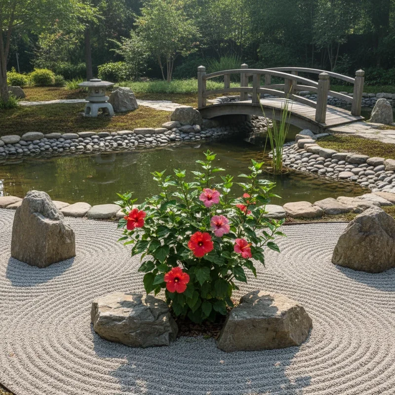 11. Create an Asian-Inspired Zen Garden with Hibiscus