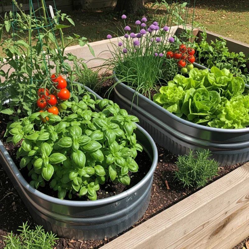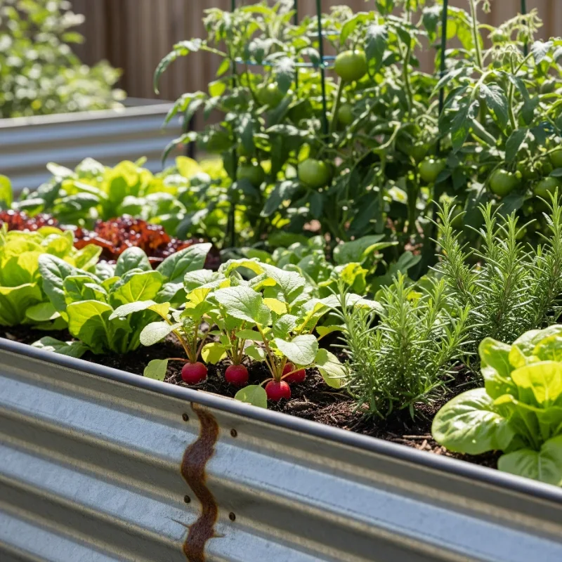 Modern industrial style meets practical gardening with corrugated metal raised beds! Salvaged roofing sheets or new panels from building supply stores create sleek, durable garden borders. At $20-30 per sheet, you can build substantial beds for less than traditional materials. The galvanized coating resists rust while the ridged design adds strength. Cut sheets to size with tin snips, bend corners, and secure with metal screws or brackets. Line sharp edges with wood trim for safety and aesthetics. The reflective surface can be painted to reduce heat or left natural for contemporary appeal. These beds warm quickly in spring, extending your growing season. Their slim profile maximizes planting space in small gardens. Group different heights for visual interest or create geometric patterns. Corrugated metal proves that affordable materials can still deliver designer looks. Your modern garden awaits!