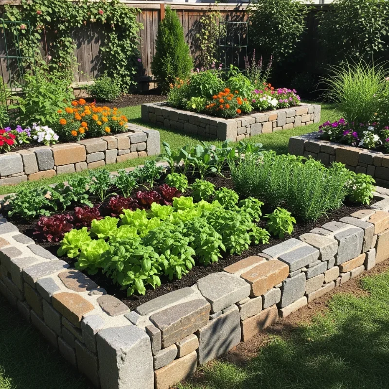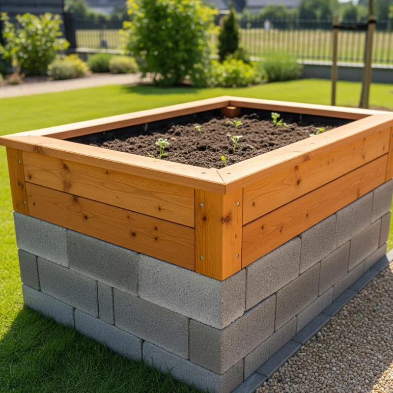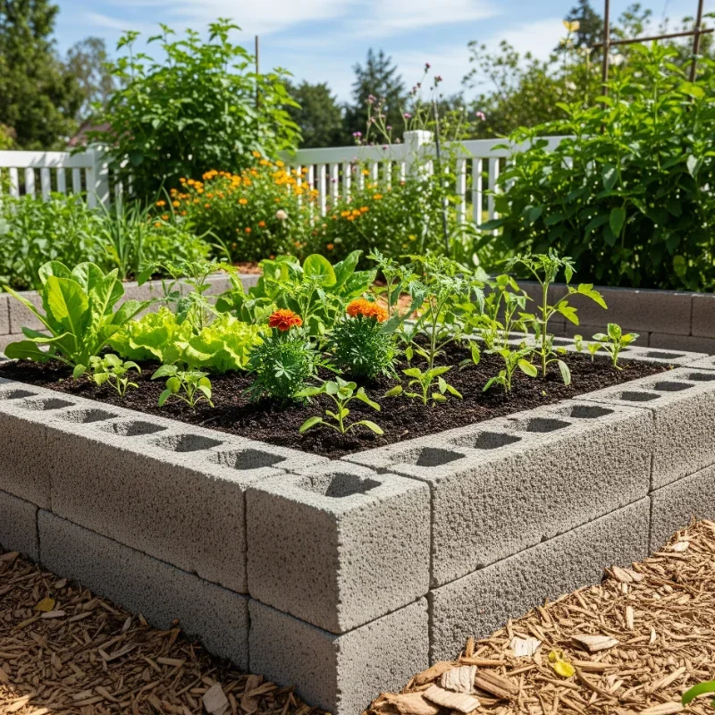 Why choose between materials when you can combine them for the perfect raised bed? Using concrete blocks as corner posts with wooden planks for sides creates sturdy, affordable beds that blend durability with natural beauty. This hybrid approach costs less than all-wood construction while lasting longer. The blocks provide stable corners that won't shift or rot, while affordable pine or cedar planks create attractive sides. Stack blocks to desired height, slide boards into place, and secure with construction adhesive. No complex carpentry skills required! The hollow blocks become bonus planters for marigolds or herbs. This method allows easy board replacement if needed without rebuilding entire beds. Create various sizes by adjusting plank lengths between corner blocks. At roughly $40-60 per bed, this combination delivers professional results on a DIY budget. Sometimes the best solutions come from thinking outside the single-material box!