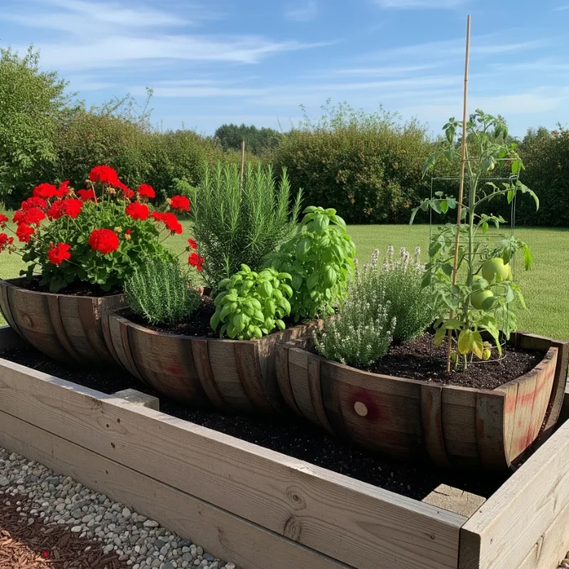 Split wine barrels bring rustic elegance to any garden while providing ample growing space for vegetables or flowers. These repurposed containers typically cost $30-50 at garden centers or wineries, making them affordable compared to custom-built beds. The oak wood naturally resists rot, ensuring years of use. Their 2-foot depth accommodates everything from carrots to small fruit trees. The curved sides add visual interest while the natural wood complements any garden style. Drill drainage holes if not present, and consider adding casters for mobility. The wood's previous wine content won't harm plants and might even add character to your garden's story! Group several barrels at different heights for dynamic displays. Line with plastic to extend barrel life, leaving drainage areas open. These conversation starters prove that garden beds can be both functional and aesthetically pleasing without breaking your budget.
