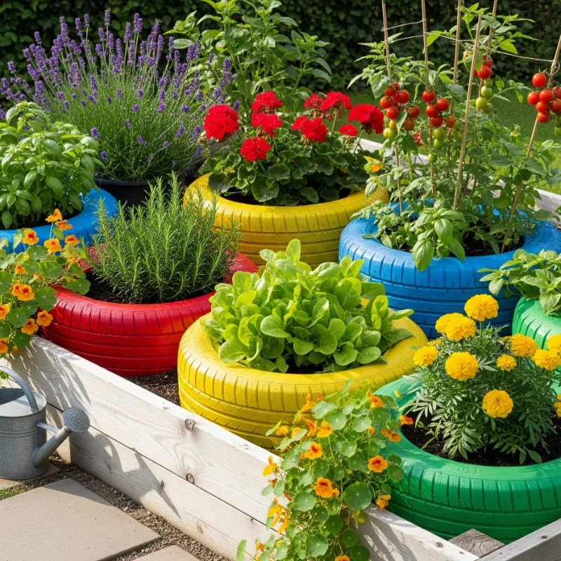 Before you pay to dispose of worn-out tires, consider transforming them into unique raised planters! Tires make excellent containers for potatoes, tomatoes, and other deep-rooted plants. Stack them for increased depth or use singles for shallow-rooted crops. The black rubber absorbs heat, creating warmer soil conditions perfect for heat-loving plants. Paint them bright colors to reduce heat absorption and add personality to your garden. Cut decorative patterns around the edges for a more attractive appearance. Fill with quality potting mix, and you've got an almost indestructible planter. Some gardeners worry about chemicals, but studies show food-safe concerns are minimal for vegetable growing. Best of all, tires are often free from auto shops or recycling centers. This recycling approach keeps tires from landfills while providing creative garden solutions. Your sustainable garden just got a whole lot more interesting!