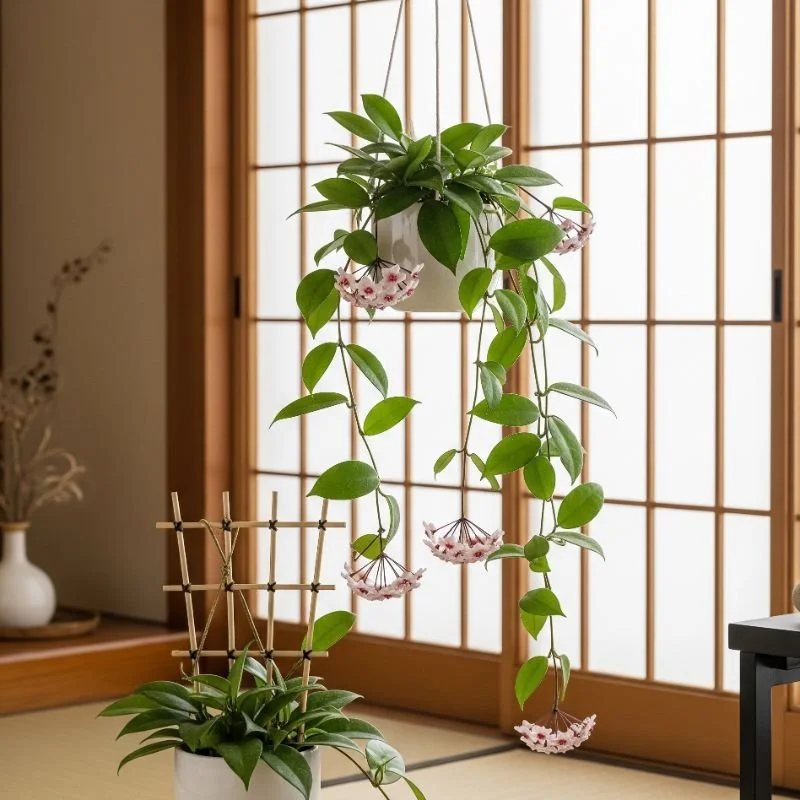 Cultivate patience and beauty with Hoya Carnosa, whose waxy leaves and fragrant star-shaped flowers embody Japanese aesthetic principles. These vining plants grow slowly but reward patient gardeners with clusters of porcelain-like blooms that perfume entire rooms. The thick, succulent leaves store water, making Hoyas forgiving of occasional forgetfulness while teaching mindful watering practices. Train vines around hoops or trellises for controlled growth that mirrors Japanese garden training techniques. Variegated varieties add visual interest even when not blooming, with cream, pink, or yellow leaf margins. The flowers' sweet fragrance intensifies at night, creating sensory experiences that enhance evening meditation sessions. Their longevity means inheriting grandmother's Hoya isn't uncommon, connecting generations through living heritage.