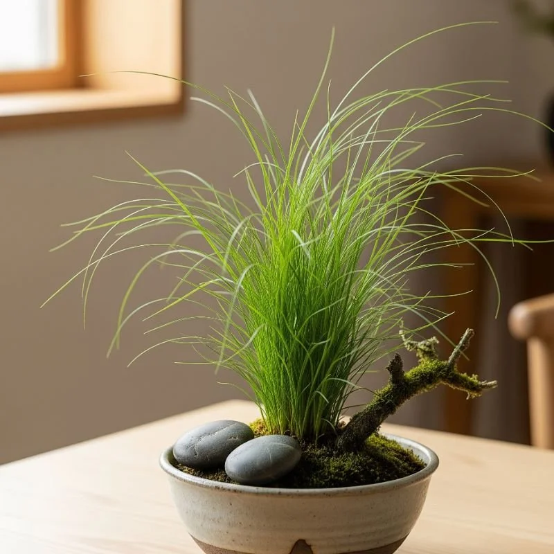 Bring the subtle movement of Japanese gardens indoors with ornamental sedge grass that sways gently with air currents. These fountain-like plants add texture and softness to rigid indoor spaces, their cascading leaves creating natural flow. Choose variegated varieties for extra visual interest, with cream or gold edges that brighten without flowers. Sedge grasses thrive in consistently moist soil, making them perfect for self-watering pots or humid bathrooms. Their grass-like appearance evokes meadow tranquility while remaining compact enough for tabletops or shelving. Use as living mulch around larger plants or mass several pots for prairie-inspired displays. The year-round greenery provides constant connection to nature, essential for maintaining zen atmosphere through all seasons.