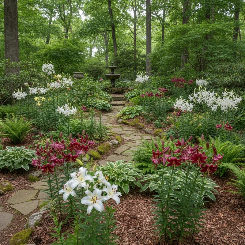 Brighten shaded areas using lily varieties that thrive with less sun, bringing color to spaces where most flowering plants struggle. Focus on martagon lilies and certain Oriental hybrids that naturally grow in woodland edges and dappled shade. Plant where they receive morning sun or bright filtered light for at least 4 hours daily. Combine with hostas, ferns, and astilbes that provide textural contrast while sharing similar light requirements. Improve soil with organic matter that mimics forest floor conditions these varieties prefer. Choose white and pale colors that show best in shade rather than deep colors that disappear. Allow foliage to remain longer for energy storage since photosynthesis is slower in reduced light. Your shade garden gains vertical interest and unexpected blooms that prove lilies aren't just for sunny spots.