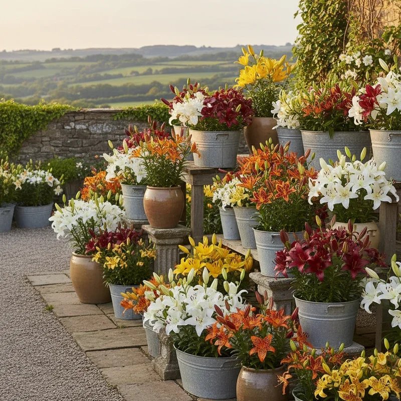 Maximize small spaces and create portable displays by growing lilies in containers that can be repositioned as blooms peak and fade. Choose compact varieties bred for container growing, ensuring proportional appearance without overwhelming pots. Layer different blooming times in single containers, with early Asians giving way to summer Orientals for extended shows. Use tall containers for dramatic patio statements or cluster smaller pots at varying heights for dynamic groupings. Move containers to prominence during blooming, then tuck away as foliage yellows. Combine lilies with trailing annuals that soften pot edges and add continuous color. Ensure excellent drainage with quality potting mix and regular feeding for confined roots. Your container collection provides flexibility to redesign displays seasonally while bringing lily magic to patios, balconies, and small gardens where ground planting isn't possible.