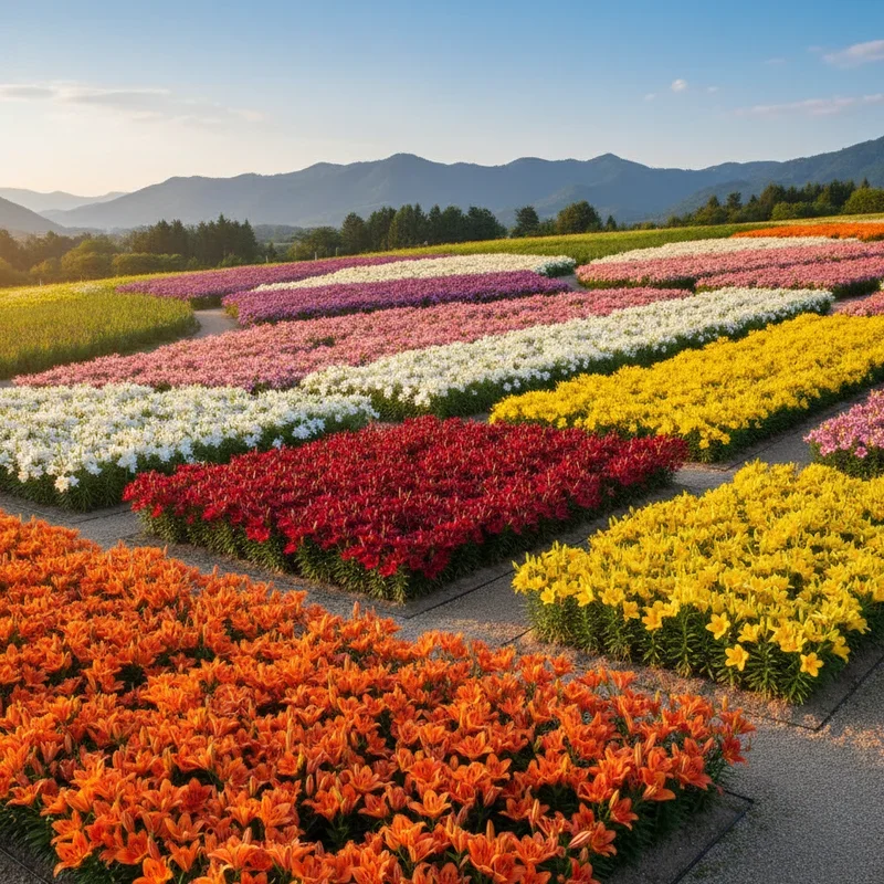 Establish dedicated cutting beds where lilies grow in efficient rows for maximum flower production without impacting landscape displays. Plant varieties by height and bloom time for easy harvest access and succession cutting throughout the season. Space rows wide enough for comfortable walking while tending and cutting blooms. Include varieties known for long vase life and strong stems that won't require individual staking. Grow extra bulbs beyond your arrangement needs, allowing regular cutting without depleting displays. Add support netting stretched between posts for straight stems perfect for arrangements. Mulch pathways to maintain clean access during wet weather harvesting. Your cutting garden becomes a flower factory that supplies fresh lilies for indoor arrangements all summer, bringing garden beauty inside while preserving outdoor landscape displays.