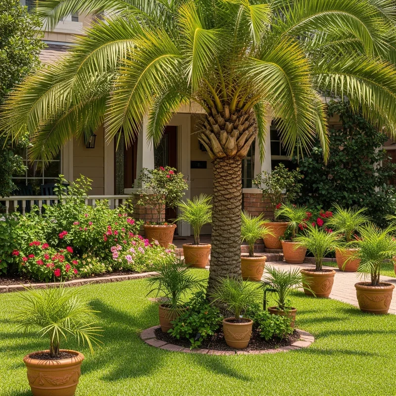 Small front yard? No ground space? Container palms deliver tropical impact without permanent commitment or extensive landscaping. Large decorative pots with Parlor Palms, Kentia Palms, or Ponytail Palms add instant tropical touches to entrances, patios, or blank corners. Containers allow you to move palms seasonally, protecting tender varieties during cold snaps or rearranging for parties. Choose pots that complement your home's architecture: modern geometrics for contemporary houses, terracotta for Mediterranean styles. Group containers at varying heights using plant stands or stacked arrangements that create vertical gardens. The portability means renters can invest in palm landscapes they can take when moving. Include wheeled bases for large containers that need occasional repositioning for maintenance or design changes. Container palms work especially well for testing locations before committing to permanent plantings.