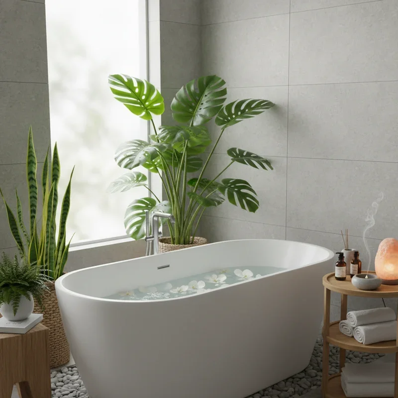 Bathrooms offer ideal conditions for many tropical plants that thrive in high humidity environments. Transform a bathroom corner into a spa-like retreat by filling it with moisture-loving plants such as ferns, orchids, bamboo, or peace lilies. The naturally humid environment means less frequent watering and happier plants that reward you with lush, vibrant growth. Install floating shelves, use a corner caddy, or place plants on the floor beside your tub to create layers of greenery that soften hard bathroom surfaces. The combination of plants and steam creates an authentic spa atmosphere that transforms your daily routine into a luxurious self-care ritual. Choose decorative pots in spa-inspired colors like white, cream, or seafoam green to enhance the tranquil ambiance. Your bathroom corner becomes a daily dose of tropical paradise.