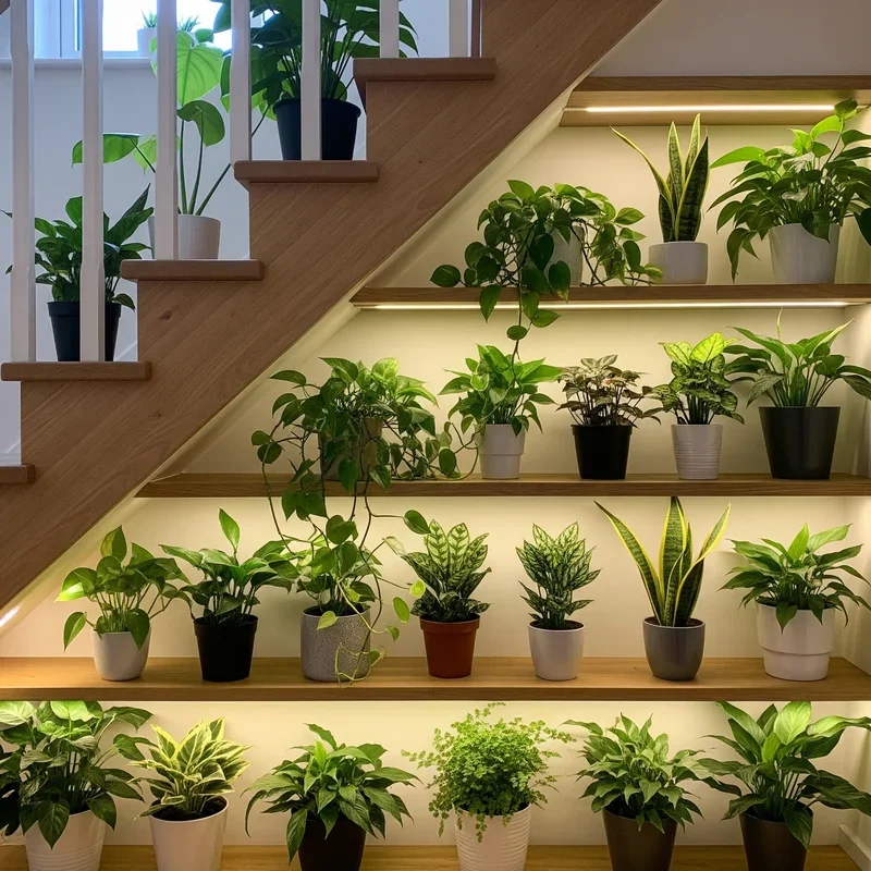 15. Under-Stair Plant Shelf Gardens