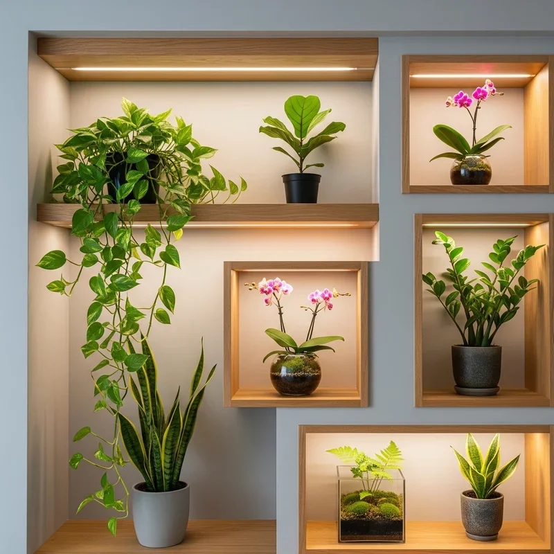 Transform architectural alcoves and built-in niches into dedicated plant sanctuaries that look like they were always meant to house greenery. These integrated displays make plants feel like permanent residents rather than decorative afterthoughts! Recessed wall niches become perfect frames for specimen plants that deserve solo spotlight. Add grow lights to darker niches, turning any space into prime plant real estate. Built-in shelving in breakfast nooks or hallways creates unexpected garden moments. The permanence encourages commitment to plant care and thoughtful selection. Custom sizing means every plant has its perfect spot without overcrowding. Paint niche backs in contrasting colors to make plants pop against the background. Include hidden water reservoirs for self-watering convenience in hard-to-reach spots. Your home's architecture becomes one with nature, creating seamless indoor-outdoor living.