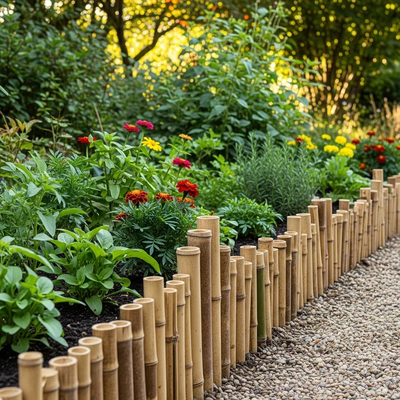 Sustainable and stylish, bamboo edging brings Asian-inspired tranquility to gardens while growing more popular as gardeners embrace eco-friendly materials. Use whole culms horizontally for bold borders or split bamboo for more delicate effects that suit smaller gardens. The natural variation in node spacing and diameter creates rhythm without monotony, keeping borders interesting along their entire length. Bamboo's hollow structure makes it lightweight for easy installation while remaining surprisingly durable when properly treated or naturally weather-resistant species are chosen. Create different heights by cutting culms at angles or varying placement depths for undulating borders that mirror natural landscapes. The golden tones of dried bamboo warm up shady areas while complementing both tropical and temperate plantings beautifully. Replace individual pieces as needed without disturbing established sections, making long-term maintenance manageable.