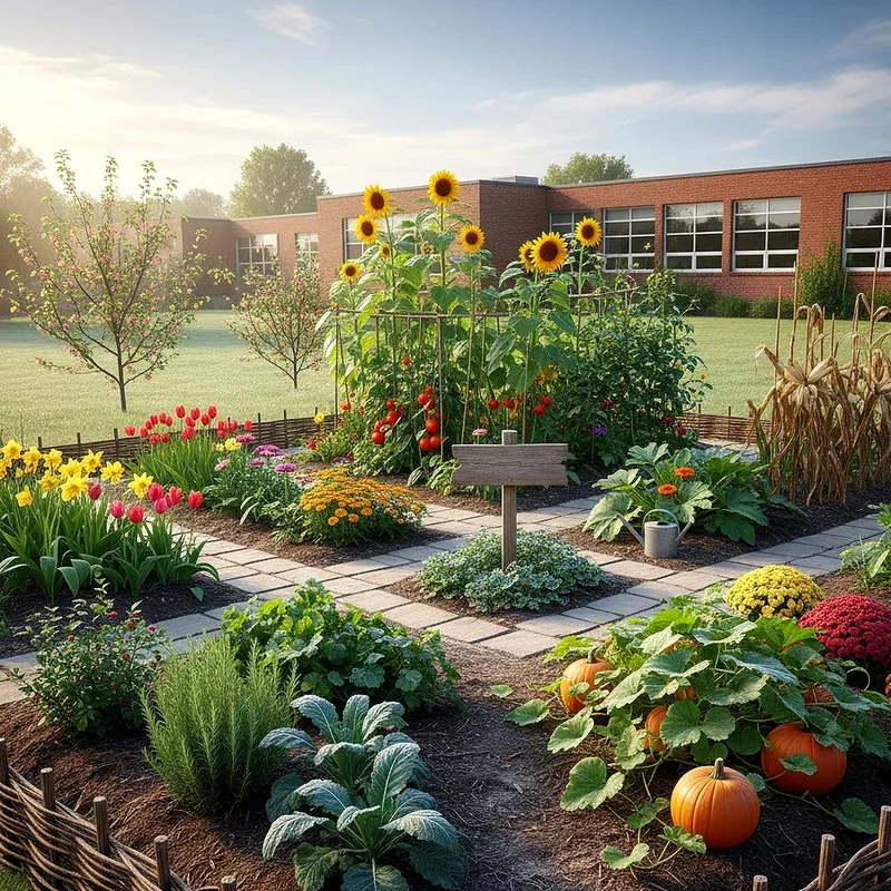 Teach planning and patience through a four-season garden that changes with nature's rhythm. Students learn about crop rotation, succession planting, and seasonal eating while maintaining year-round engagement with their outdoor classroom. Spring peas give way to summer tomatoes, followed by fall pumpkins and winter greens, demonstrating agricultural cycles and sustainability. Create seasonal celebration gardens with spring bulbs, summer annuals, autumn harvest crops, and winter interest plants. This approach teaches patience, planning, and adaptation while providing fresh learning opportunities throughout the school year. Students develop long-term thinking skills and understand that good things take time. The changing garden reflects life's cycles and teaches that every season has its purpose and beauty.