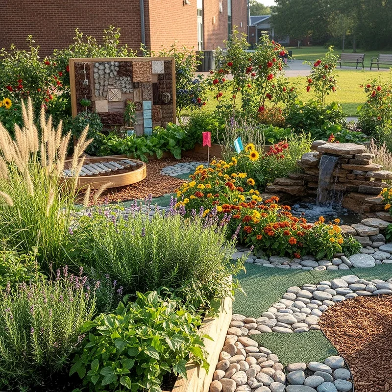 Design a garden that engages all five senses through carefully selected plants and features. Include lamb's ear for touch, lavender for smell, cherry tomatoes for taste, rustling grasses for sound, and bright flowers for sight. This inclusive space supports diverse learning styles and provides therapeutic benefits for students with special needs or sensory processing differences. Teachers can conduct mindfulness exercises, descriptive writing workshops, and scientific observations in this calming environment. Add wind chimes, water features, and textured pathways to enhance the sensory experience throughout the seasons. The garden becomes a retreat where stressed students find peace and overwhelmed learners can reset their nervous systems. Every child discovers their own way to connect with nature through their strongest sensory pathway.
