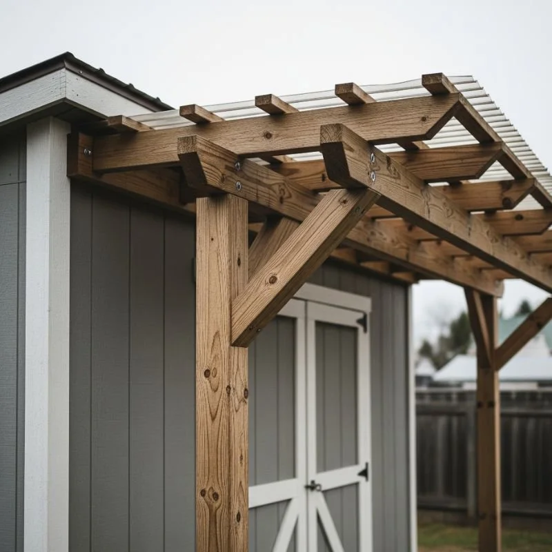 Welcome to the future of shed awnings with polycarbonate panels that combine the clarity of glass with the durability of plastic. These lightweight panels filter harmful UV rays while allowing natural light to illuminate your workspace, creating bright, protected areas that feel open and airy. Available in clear, bronze, or opal tints, they offer varying levels of light transmission and privacy. The panels resist impact, won't yellow over time, and handle extreme temperatures without cracking. Installation involves mounting aluminum frames to your shed, then clicking the panels into place, making it a manageable DIY project. The modern appearance suits contemporary gardens while the practical benefits appeal to anyone who's ever worked in a dim shed. Some designs even include ventilation channels that prevent heat buildup underneath.