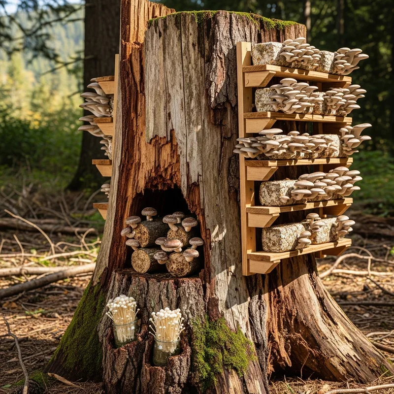 Turn your stump into a productive mushroom farm that provides gourmet ingredients while adding mysterious forest vibes. Nature already wants to decompose that stump, so why not make it delicious? Drill holes and inoculate with mushroom spawn like oyster, shiitake, or lion's mane varieties. The tall structure provides multiple growing zones at different heights and orientations. Keep the stump moist with regular misting for optimal mushroom production throughout growing season. The fascinating fruiting process becomes an educational garden feature that amazes visitors. Different mushroom types create varied textures and colors as they emerge from the wood. Position in a shady spot where mushrooms naturally thrive and moisture retention improves. Your stump becomes a sustainable food source that literally grows from death into life.