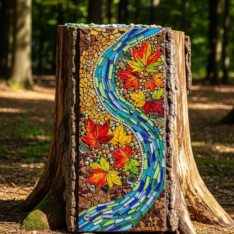 Transform your stump into a dazzling mosaic masterpiece that adds color and artistic flair to your garden landscape. This is where broken becomes beautiful! Collect broken tiles, dishes, mirrors, and glass to create intricate patterns covering the stump surface. The cylindrical shape provides an excellent canvas for wraparound designs that look different from every angle. Use weather-resistant grout and sealant to ensure your artwork withstands the elements beautifully. Create themes like underwater scenes, abstract patterns, or geometric designs that complement your garden style. The reflective surfaces catch sunlight, creating sparkles that dance throughout the day magically. Mix materials for textural variety that invites touch and closer inspection constantly. Your stump becomes a permanent art installation that proves garden decor doesn't require huge investments.