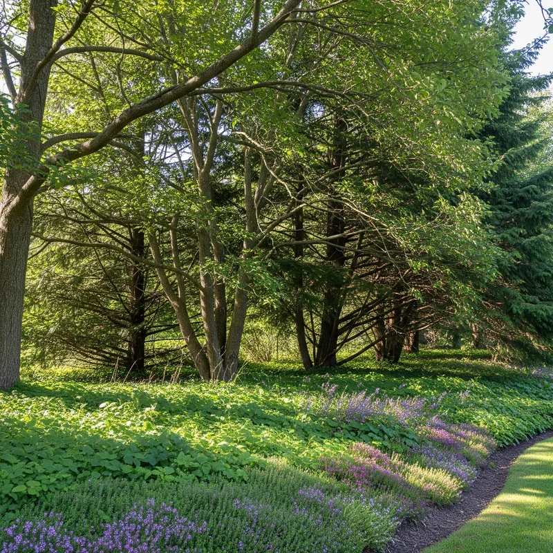 Plant low-growing ground covers that create living carpets around trees while suppressing weeds naturally! Choose shade-tolerant varieties like ajuga, pachysandra, or creeping phlox depending on sun exposure. These spreading plants fill in quickly, creating dense mats that prevent weed germination. Many ground covers bloom seasonally, adding color bonuses to their practical benefits. Select evergreen varieties for year-round coverage or deciduous types for seasonal changes. The living mulch conserves moisture and moderates soil temperature like traditional mulch. Trim edges periodically to maintain defined borders between ground cover and lawn. This low-maintenance solution works especially well under trees where grass struggles. Your ground cover border becomes a self-sustaining ecosystem requiring minimal intervention once established.