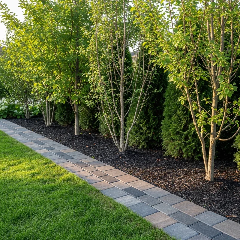 Design intricate patterns with paver stones that turn tree borders into artistic ground features! Arrange concrete or natural stone pavers in herringbone, basketweave, or circular patterns for visual interest. Mix colors and textures to create unique designs that reflect your personal style. The flat surface of pavers makes them perfect for placing potted plants or garden decorations seasonally. Level each paver carefully for a professional finish that withstands foot traffic if needed. Leave small gaps between pavers filled with sand or ground cover for drainage. This versatile option works in both formal and casual garden settings. Create wider borders that double as pathways or seating areas around larger trees. Your paver border becomes functional art that adds structure and pattern to otherwise plain lawn areas.