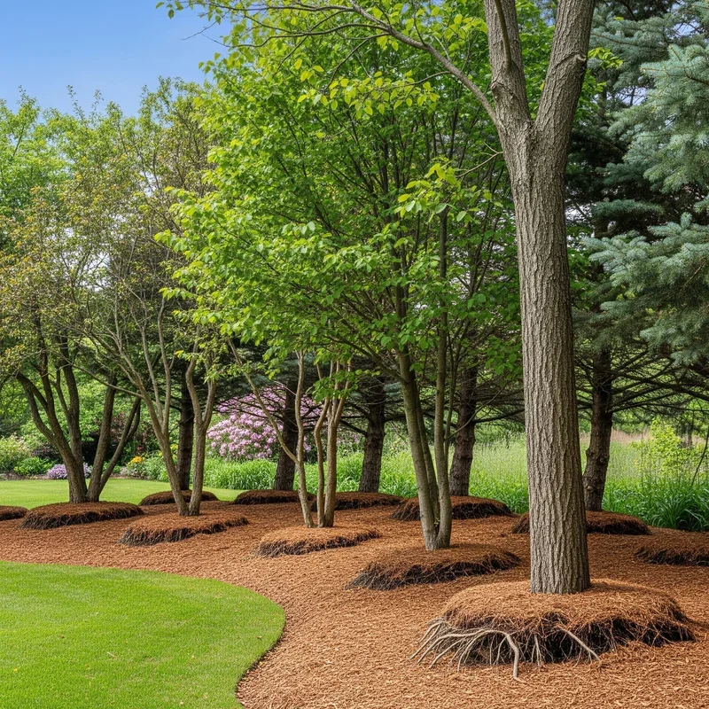 Embrace simplicity with a natural mulch ring that nurtures your tree while looking effortlessly elegant! Spread organic mulch like shredded bark, wood chips, or cocoa hulls in a 3-4 inch layer around your tree. Create a defined edge using a spade or install flexible edging to maintain clean lines between mulch and lawn. The mulch conserves moisture, regulates soil temperature, and slowly decomposes to feed your tree naturally. Choose mulch colors that complement your home's exterior or garden theme, from rich browns to striking reds. Keep mulch away from the trunk to prevent rot and pest problems. Refresh annually for maintained appearance and continued benefits. This budget-friendly option suits any garden style while providing maximum tree health benefits. Your mulch ring becomes a nurturing embrace that helps trees thrive while looking professionally maintained.
