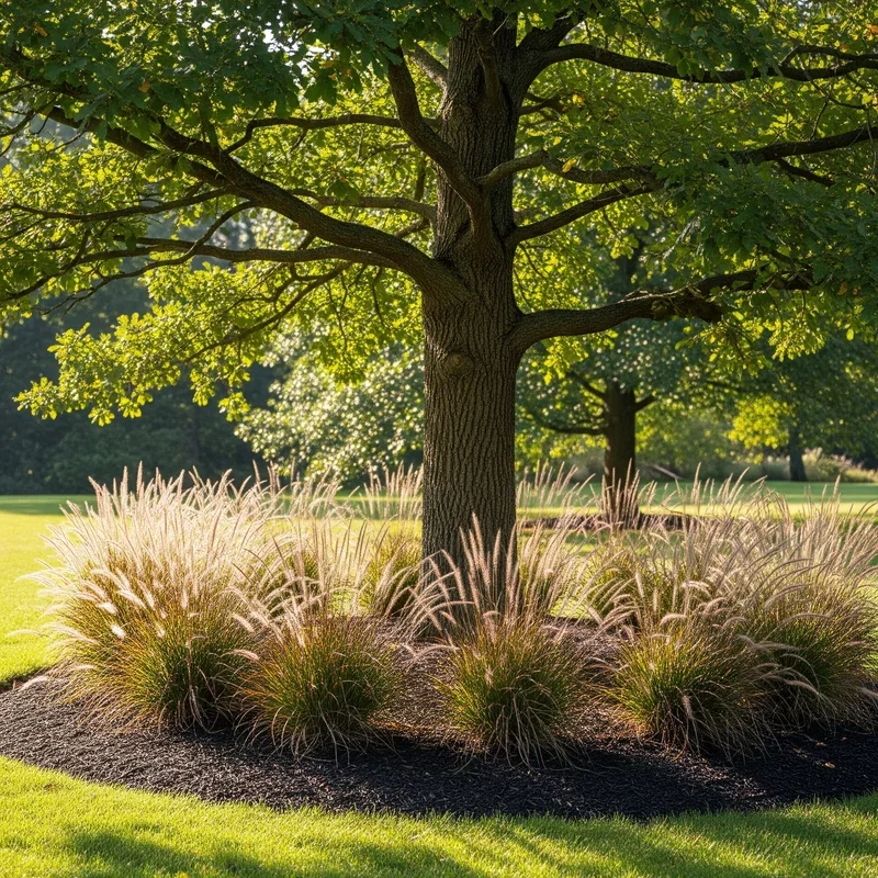 Surround your trees with flowing ornamental grasses that add movement and texture to static landscapes! Plant varieties like fountain grass, blue fescue, or Japanese forest grass in a ring formation. Choose grass heights that complement your tree's scale without overwhelming smaller specimens. The soft texture contrasts beautifully with rough bark while providing year-round interest. Many ornamental grasses require minimal water once established, perfect for trees that prefer drier conditions. Their root systems help prevent erosion while allowing water penetration to tree roots. Cut back annually for fresh growth or leave seed heads for winter interest and bird food. Mix different grass varieties for varied textures and colors throughout seasons. Your grass border becomes a living, breathing frame that dances in the breeze while requiring minimal maintenance.