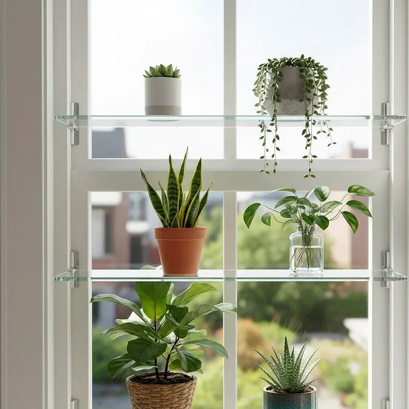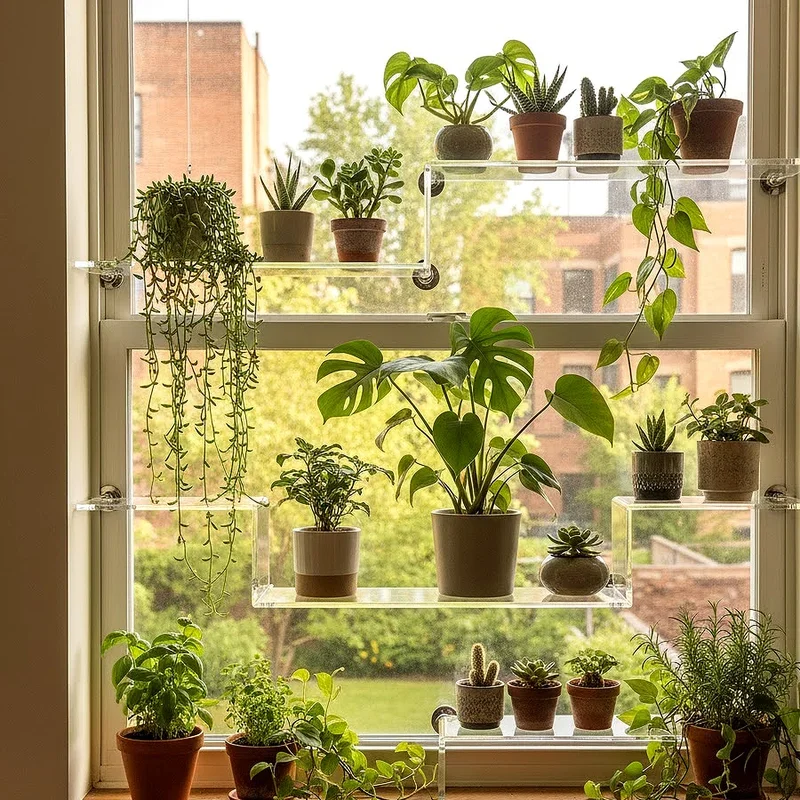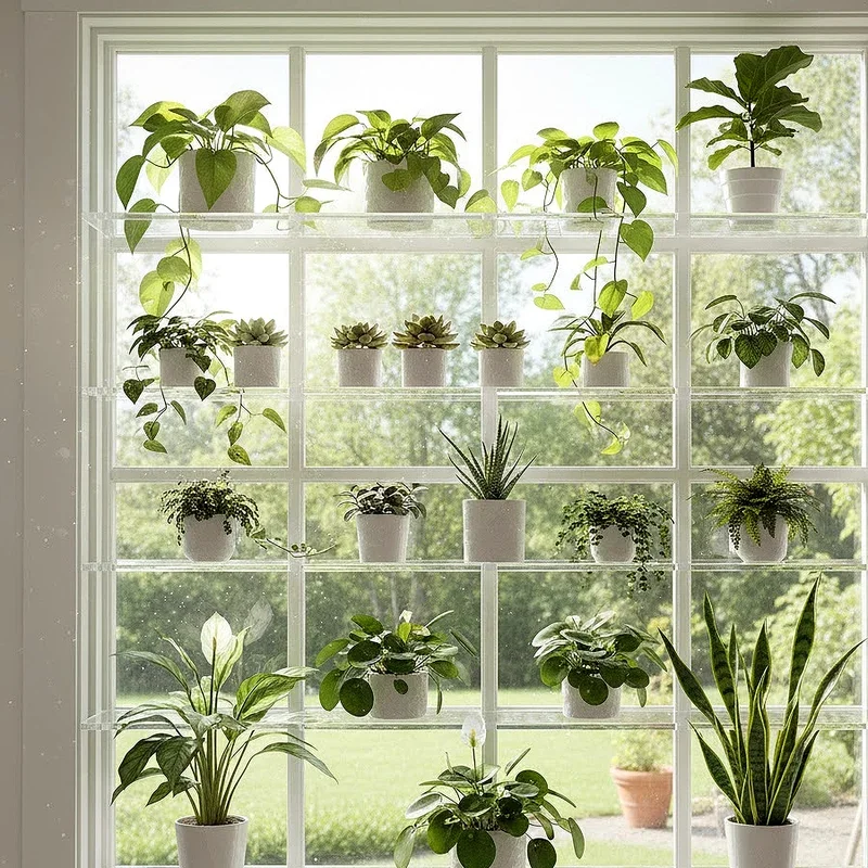 Acrylic shelves create the illusion of plants floating magically in space while providing sturdy, reliable support for your green collection. These crystal-clear platforms virtually disappear against your window, ensuring nothing distracts from your beautiful botanical display. The transparent nature allows light to pass through unimpeded, benefiting plants on lower shelves that might otherwise sit in shadow. Acrylic proves surprisingly strong, easily supporting medium-sized pots without bending or warping under weight over time. The modern, clean aesthetic works beautifully in contemporary spaces where simplicity and elegance take center stage magnificently. Unlike glass, acrylic resists shattering, making it a safer choice for homes with children or pets running around the house.